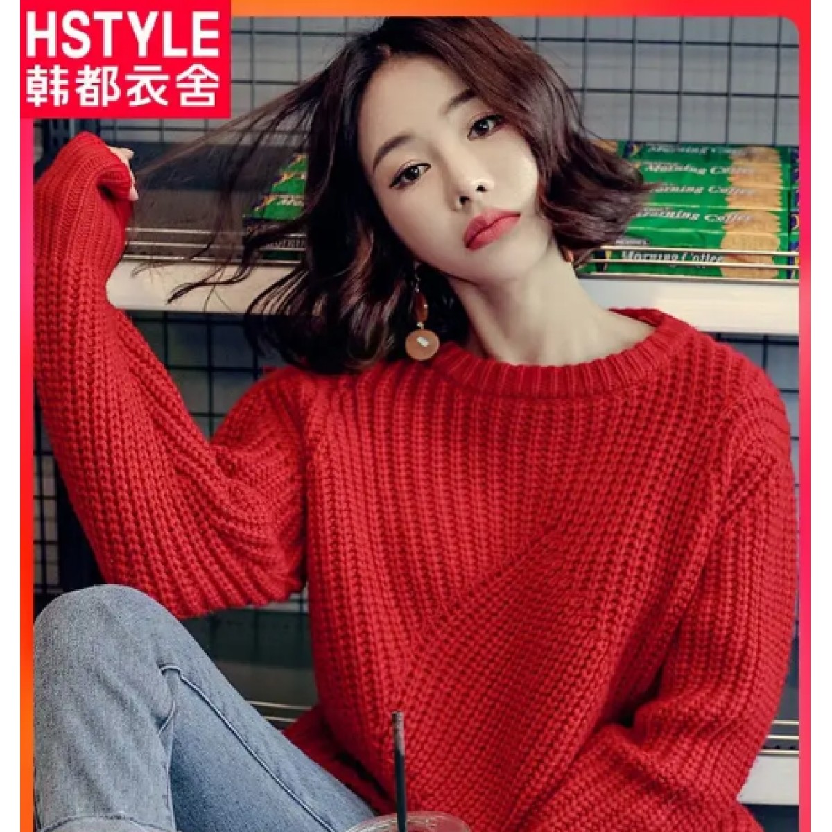 韩都衣舍新款女装韩版宽松圆领毛衣