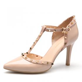 莱尔斯丹 2017春新款复古粗跟圆头中跟高跟鞋女鞋通勤单鞋8M43701