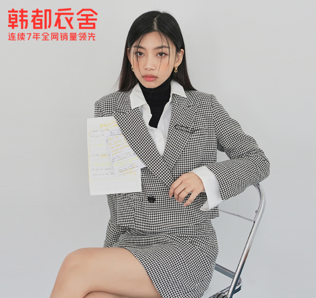韩都衣舍韩版女装千鸟格外套时尚套装
