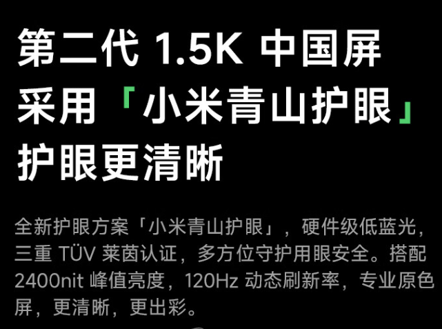 Turbo3 性能旋风,20MP前摄,50MP主摄,8M超广角镜头。5000毫安超大电池带来超长续航,1.5K中国屏(小米青山护眼)护眼更清晰,搭配2400nit峰值亮度,120Hz动态刷新率,专业原色屏,更清晰更出彩。