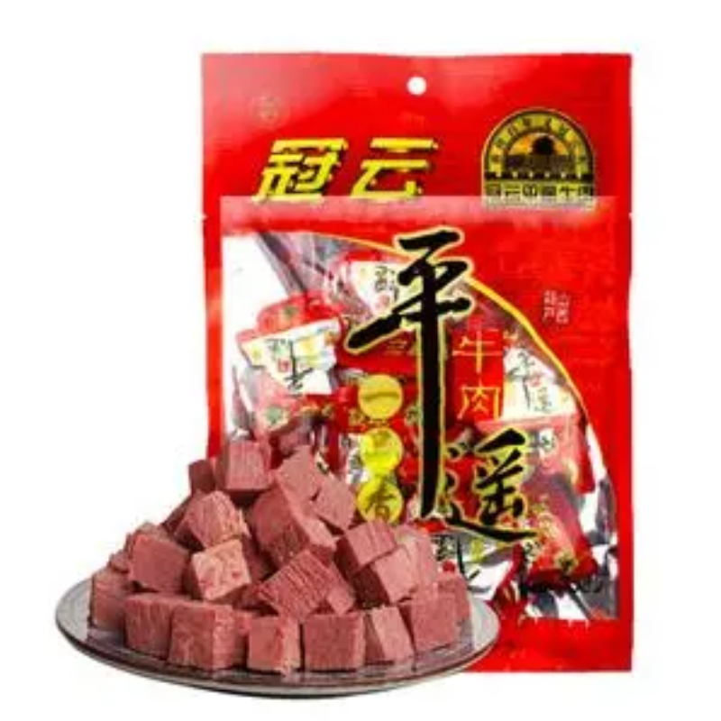 商品名称:冠云平遥牛肉熟食 山西特产 中华老字号即食代餐零食 一口香熟食酱牛肉干粒休闲零食 原味一品香454g