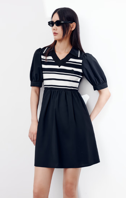 拼接翻领连衣裙