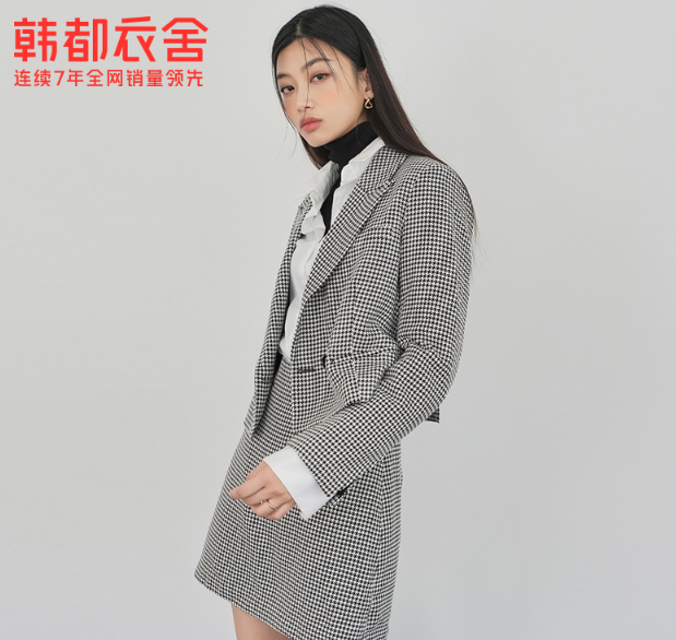 韩都衣舍韩版女装千鸟格外套时尚套装